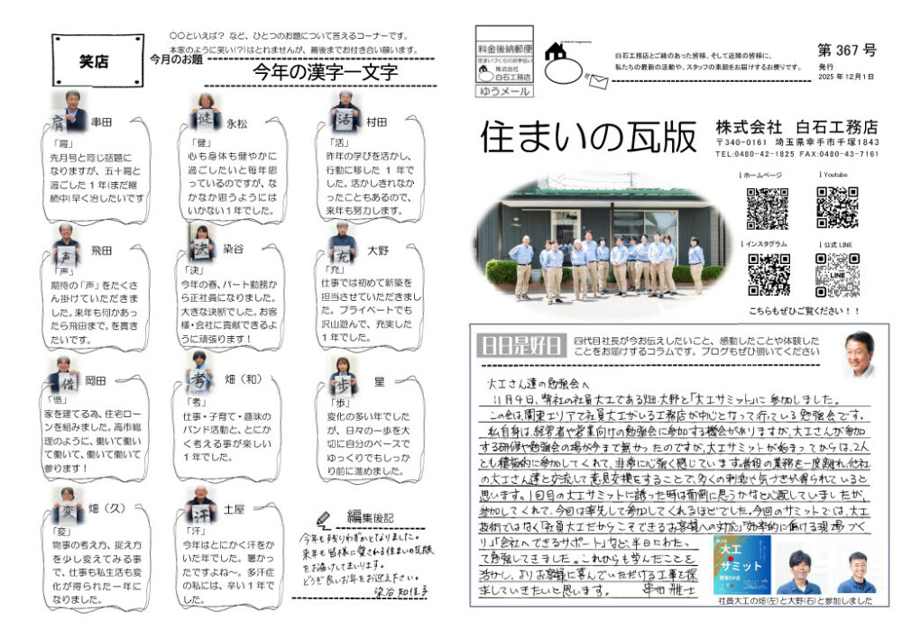 住まいの瓦版をはじめとした、白石工務店の資料請求はこちらから