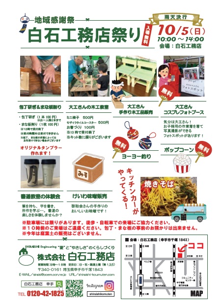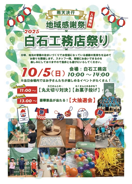 明日は、地域感謝祭「白石工務店祭り」です